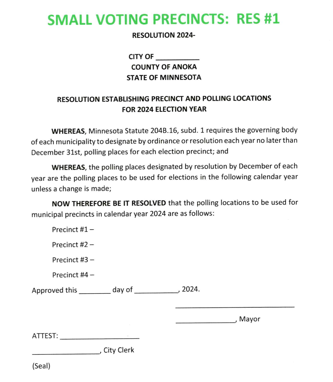 These eleven (11) resolution templates are applicable to cities and townships (as well as adaptable to the county level) in Minnesota: