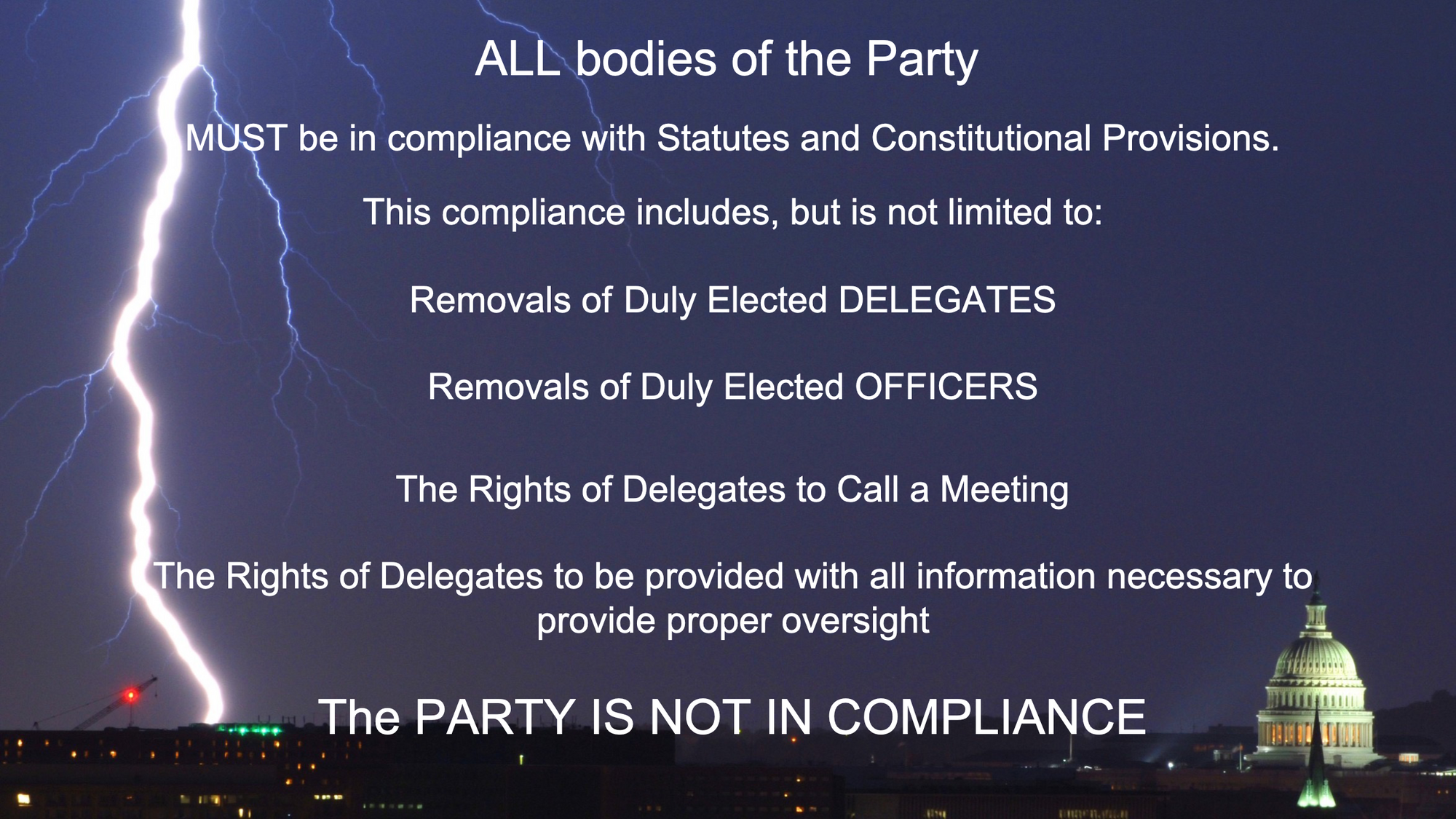 Previously, have you as a state convention delegate informed state central delegates (who may now call a meeting) that you know about issues of the Party’s non-compliance with its own constitution and rules?
