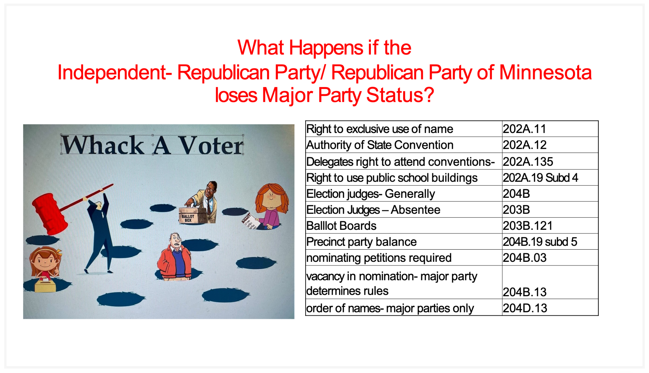 How Patriots Can Help the MNGOP Return to Compliance with a New Reasonable State Statute 200.02 Subd. 7 Which Could Revoke its Major Party Status