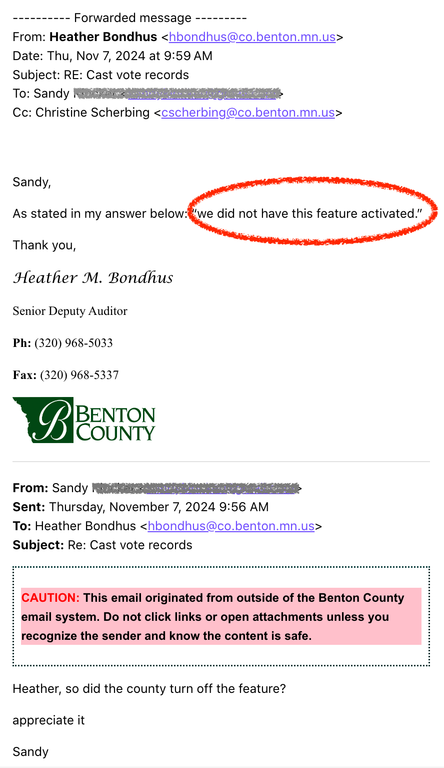 - The Senior Deputy Auditor claims not to have the cast vote record ballot image feature activated ?