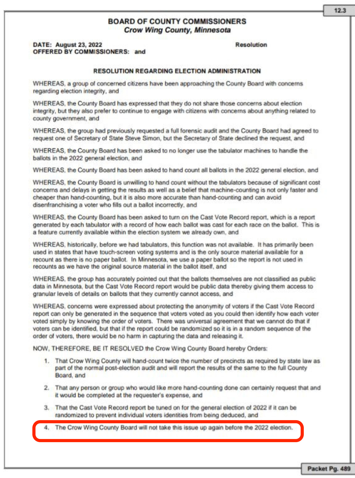 Crow Wing Tries to Shut Down Further Election Transparency Action While Passing Resolution that Will Still Only Audit <1% of Vote Ovals