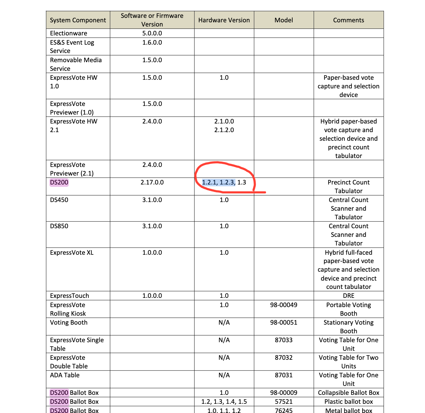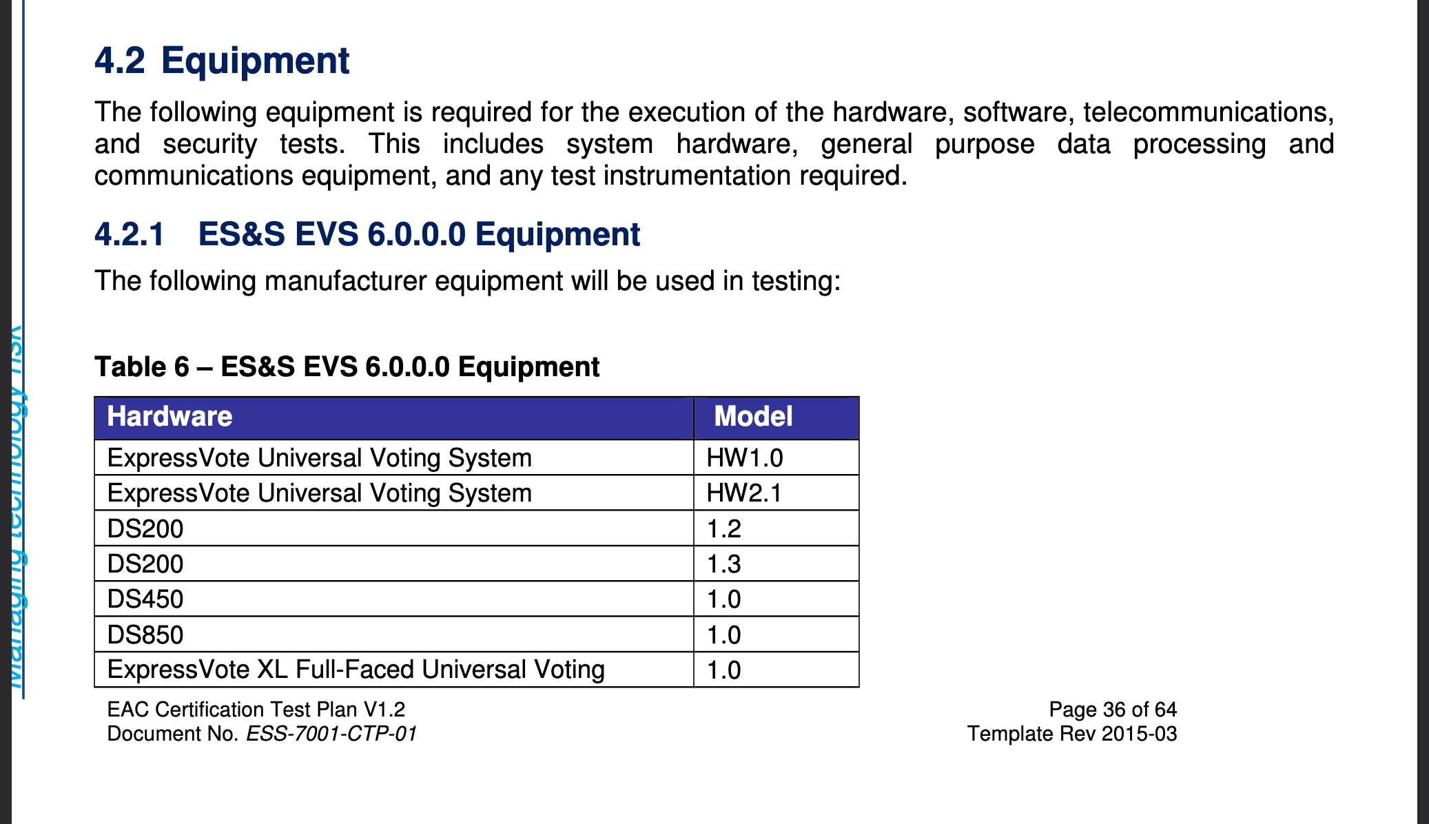 In other words, that the hardware, software, and firmware comprising equipment such as the tabulators or the laptops which house the Electionware software, are up to snuff.