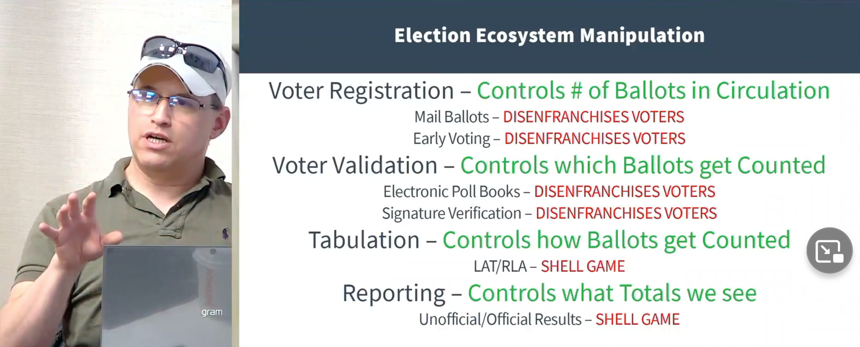 Near the end, I liked that Erin and David laid out 3 overall ways to subvert election, 1) election file, 2) direct manipulation (such as this demonstrated by Mark Cook in this video starting at 18m30s), and 3) elegant upstream manipulation (outside the purview of election clerks and officials).