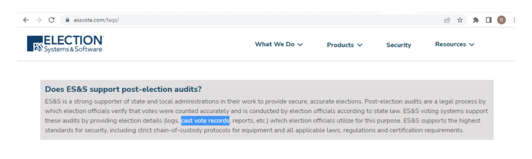Now, we already know from ES&S’s FAQ page that they support cast vote records, which is part of why “numerous data requests” are coming into election offices statewide.
