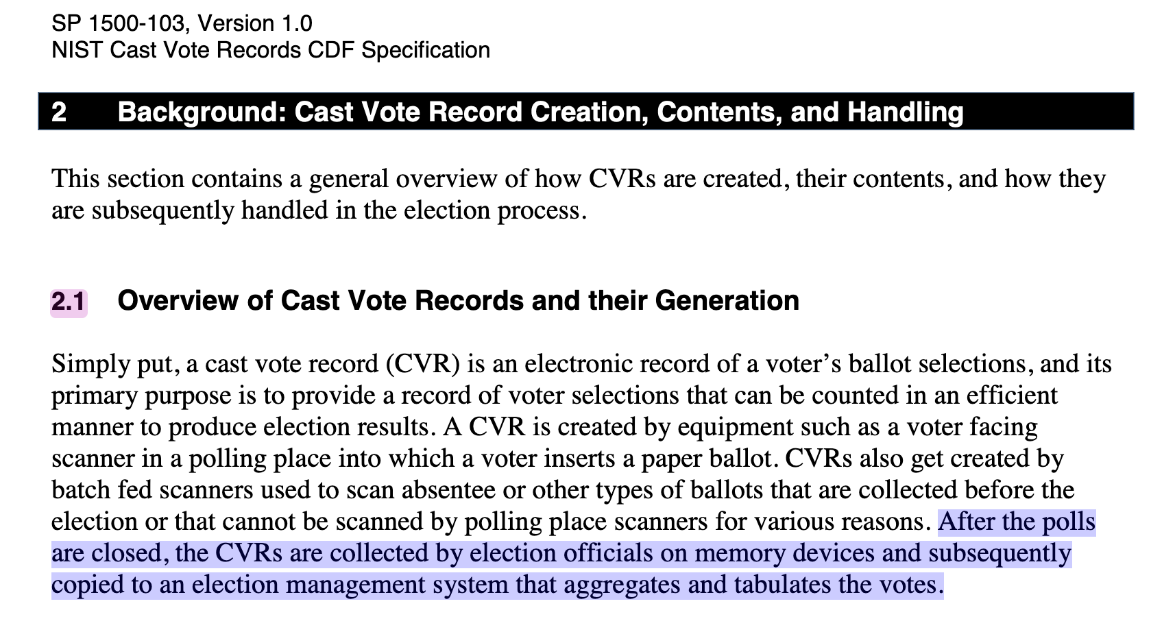 From the National Institute of Standards and Technology we have the following definition, purpose, and process for cast vote records: