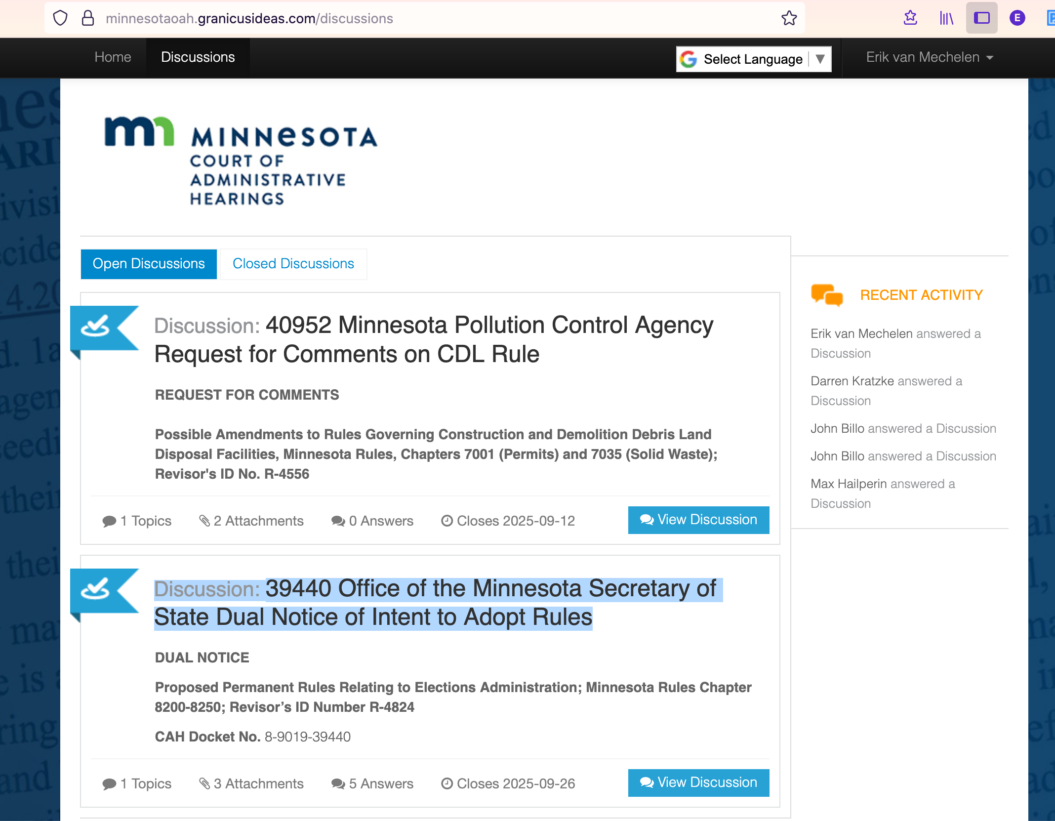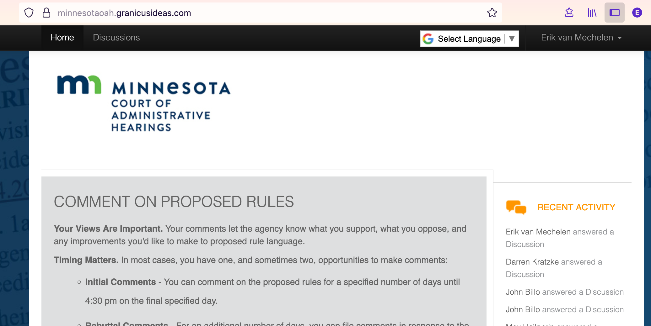 Go to https://minnesotaoah.granicusideas.com/ then click in upper right, Sign Up by providing email and password, then verify in your email provider - my email from Granicus went to spam folder