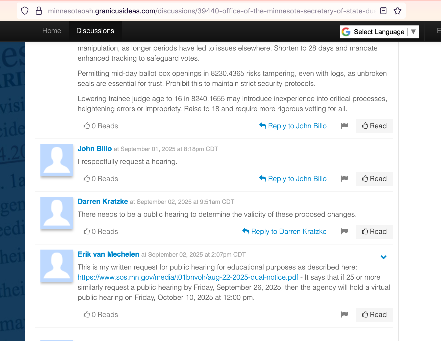 If you want a public hearing, follow these steps before Friday Sept 26 so everyone can take more time to learn from our MNSOS about these: