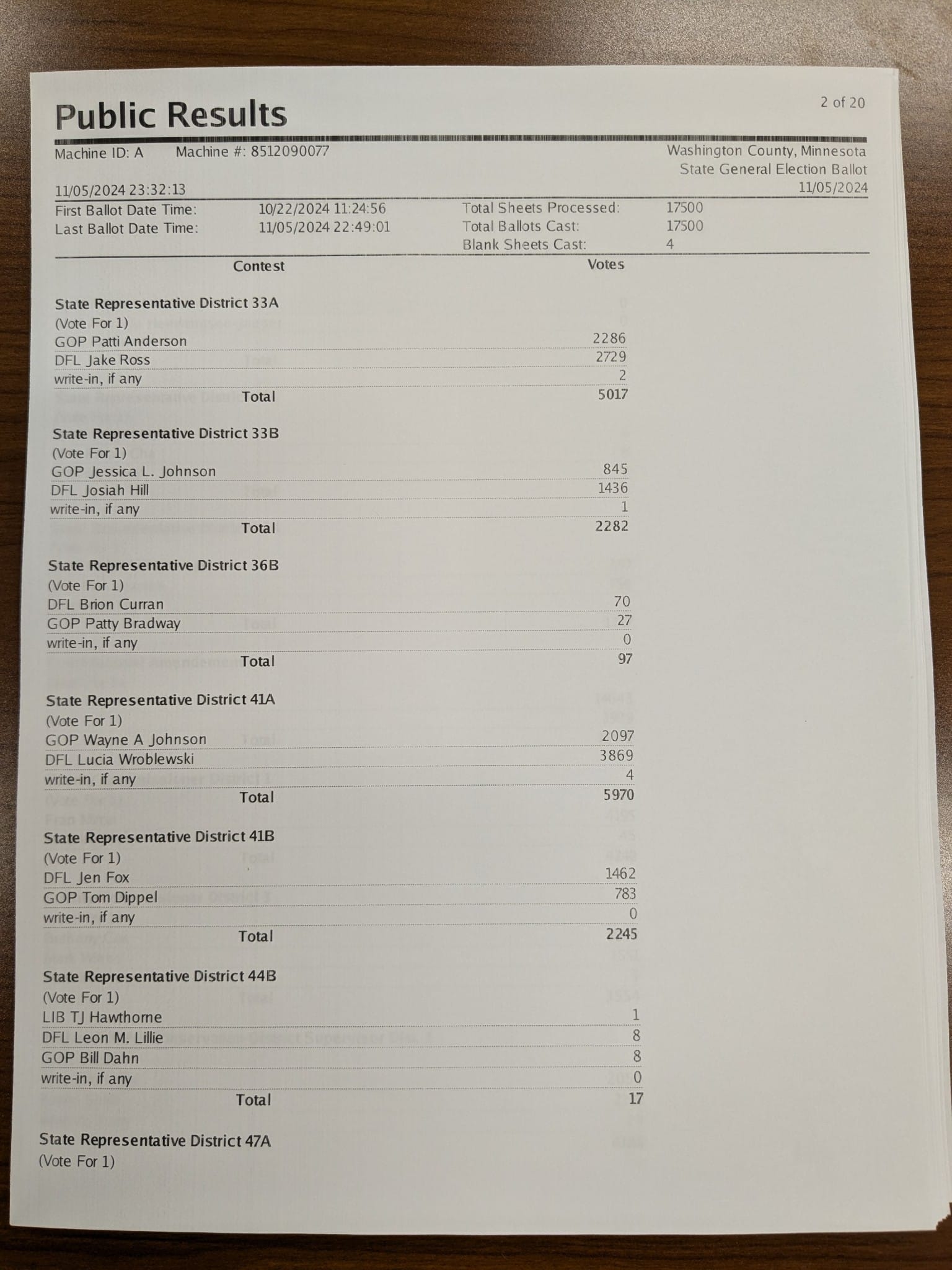 Proof tabulation began 10/22/2024 in Washington County.