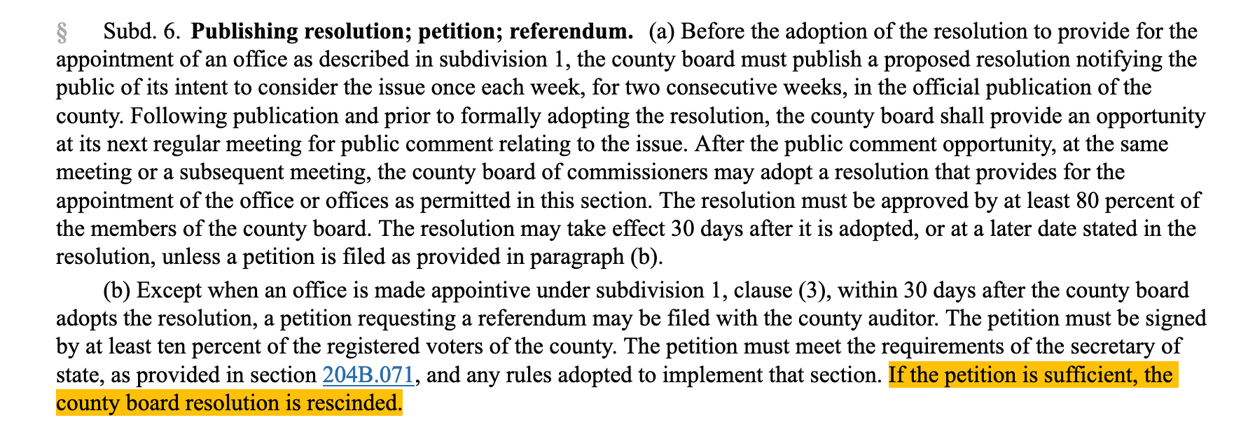 Minnesota Statute 375A.1205 Subd. 6b reads: