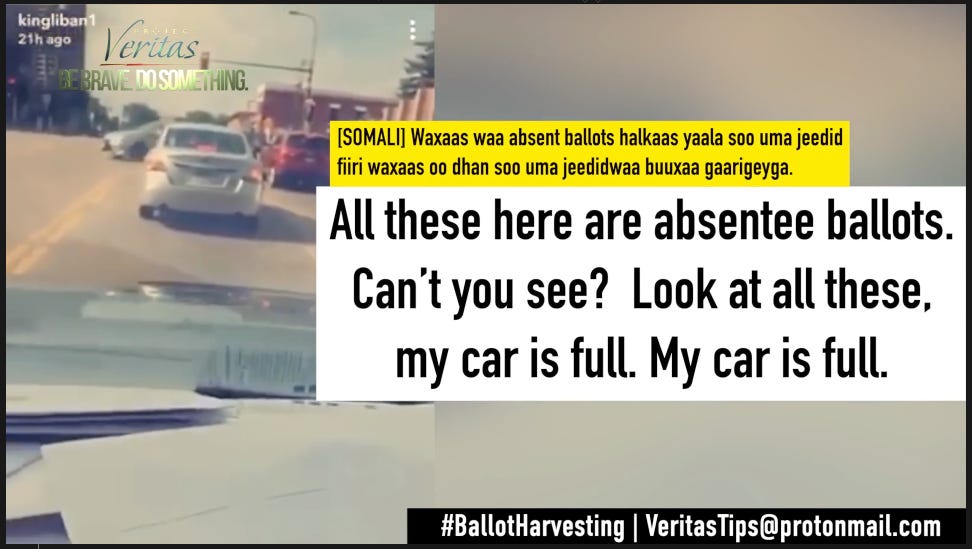 https://www.projectveritas.com/video/ilhan-omar-connected-ballot-harvester-in-cash-for-ballots-scheme-car-is-full/