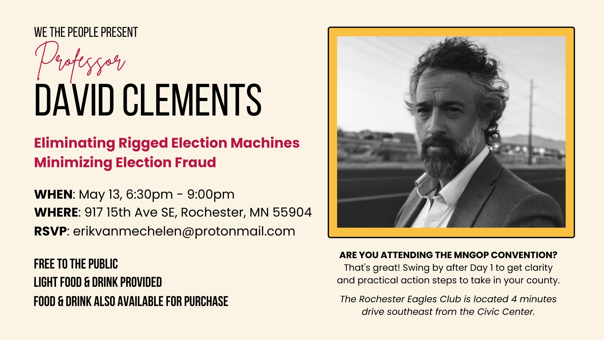 However I will attend the state convention as a delegate and will host an event Friday evening for those interested in meeting one another and learning more about practical steps they can take in their counties to remove machines and reform elections. See the event details below and RSVP to erikvanmechelen@protonmail.com.